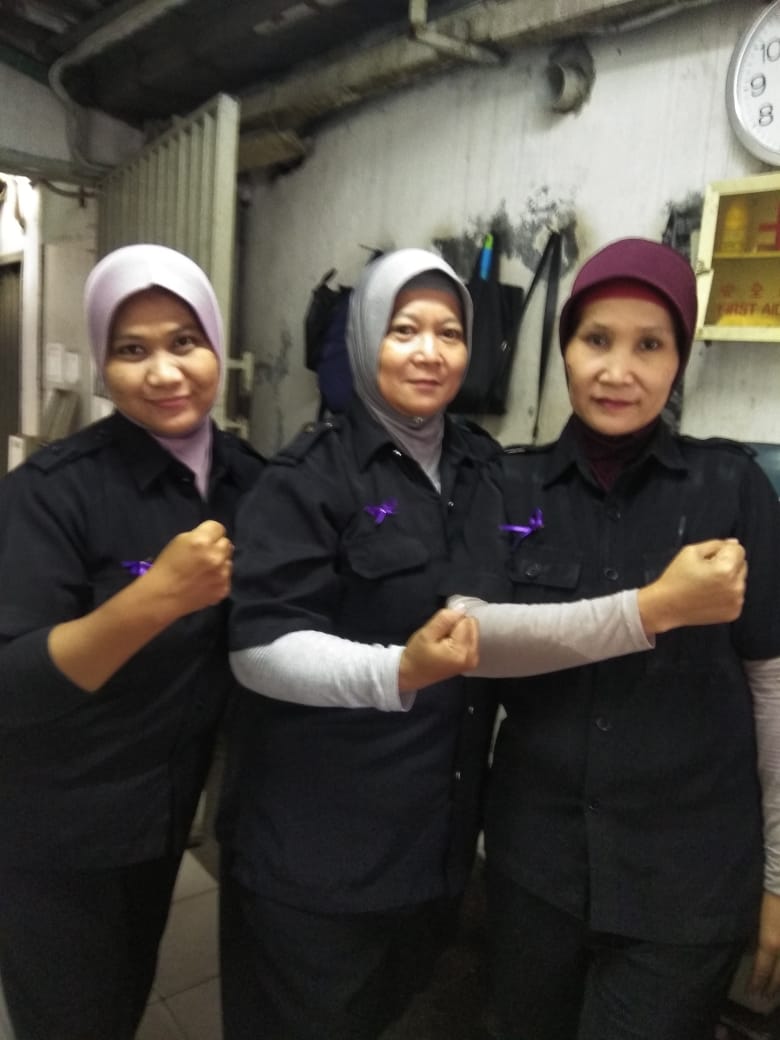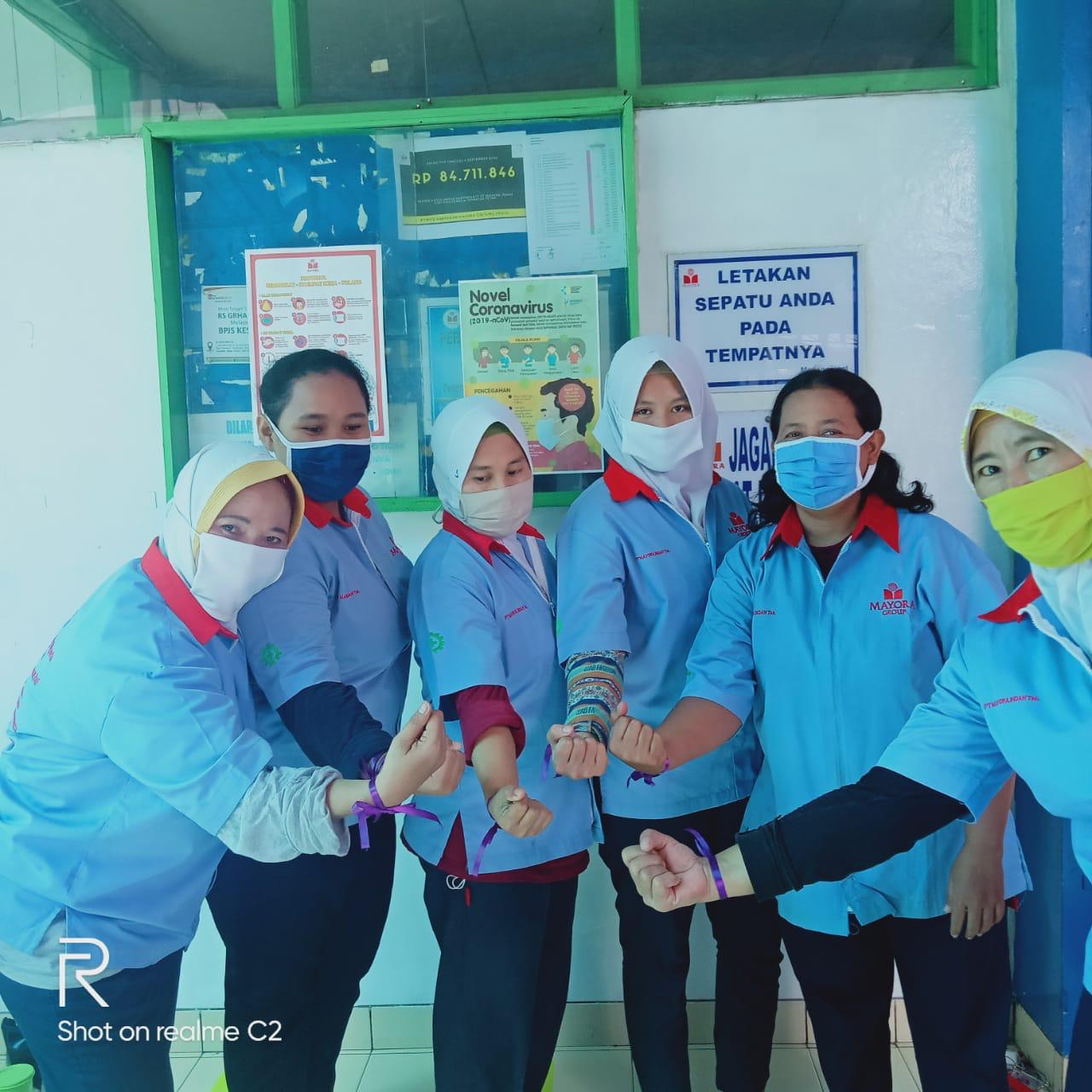 Buruh perempuan di PT Mulia Cemerlang Abadi (MCA) di Tanggerang anggota dari serikat buruh Konfederasi Serikat Pekerja Nasional (KSPN) Selasa ini ikut memakai pita ungu, “Tidak semua buruh perempuan mengerti tentang RUU PKS ini tapi setelah diberi sosialisasi bahwa RUU PKS dapat melindungi kita dari kekerasan seksual, teman-teman dengan senang hati memakai pita ungu ini” begitu kata Suryanti salah seorang pengurus serikat yang menginisiasi aksi ini di pabrik PT MCA.