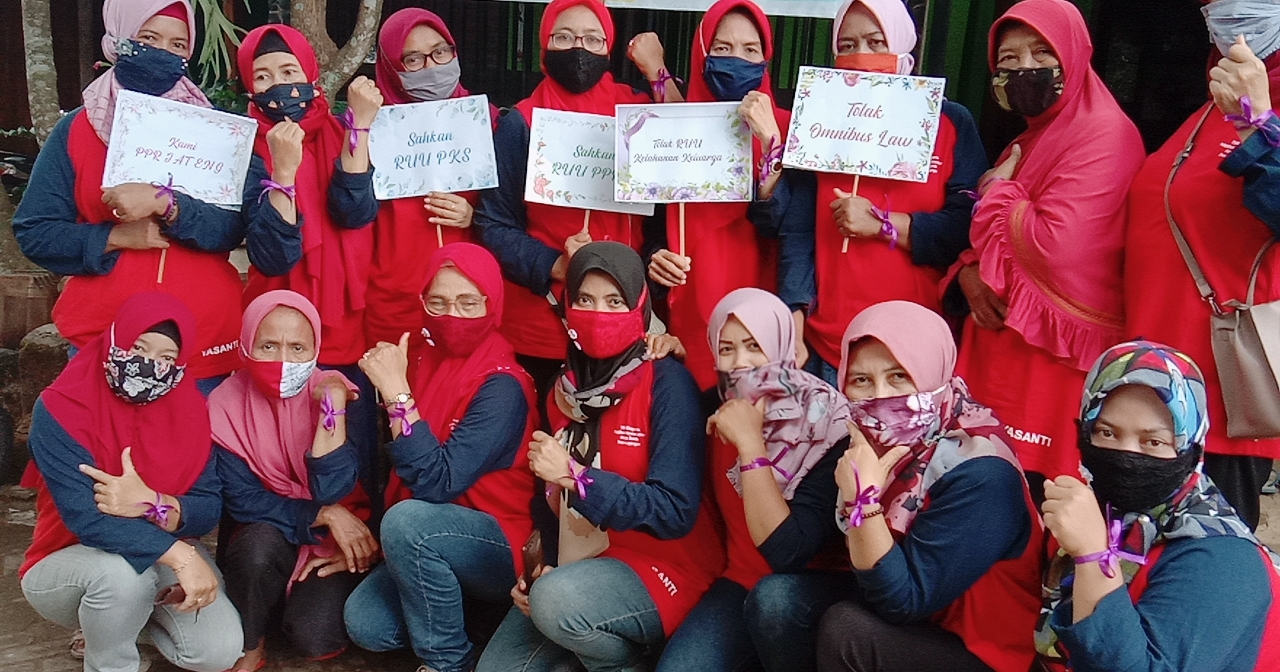 Buruh perempuan dari berbagai kota beramai-ramai memakai pita ungu sebagai bentuk dukungan terhadap Rancangan Undang-Undang Penghapusan Kekerasan Seksual (RUU P-KS). Asal mula pemakaian pita ungu ini dilatarbelakangi oleh kesulitan berpartisipasi secara langsung dalam Aksi Selasaan yang biasanya berjalan di depan Gedung DPR RI. Namun hambatan waktu dan jarak diubah jadi semangat oleh buruh perempuan. Dalam Aksi Selasaan ke-12 yaitu pada 22 November 2020, mereka beramai-ramai memakai pita ungu. Berikut korespondensi Perempuan Mahardhika dengan para buruh perempuan :